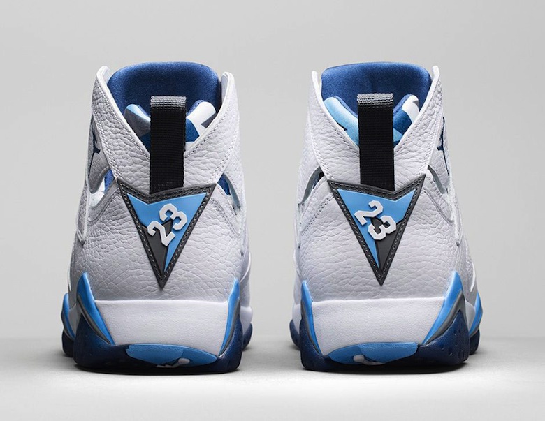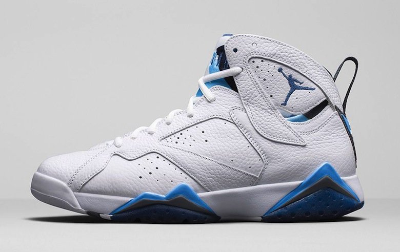 Originalement conçu en 2002, le coloris « French Blue » était le tout premier coloris non-original imaginé pour cette Air Jordan 7. Pour rappel, c’est d’ailleurs avec celle-ci que Michael Jordan a choisi de revenir sur les parquets NBA avec les Wizards de Washington en 2002. Les designers de la marque ont également retravaillé ce modèle pour le proposer au sein de programme Remastered avec notamment une conception très proche de l’originale avec son upper en cuir blanc et ses différents accents de bleu.