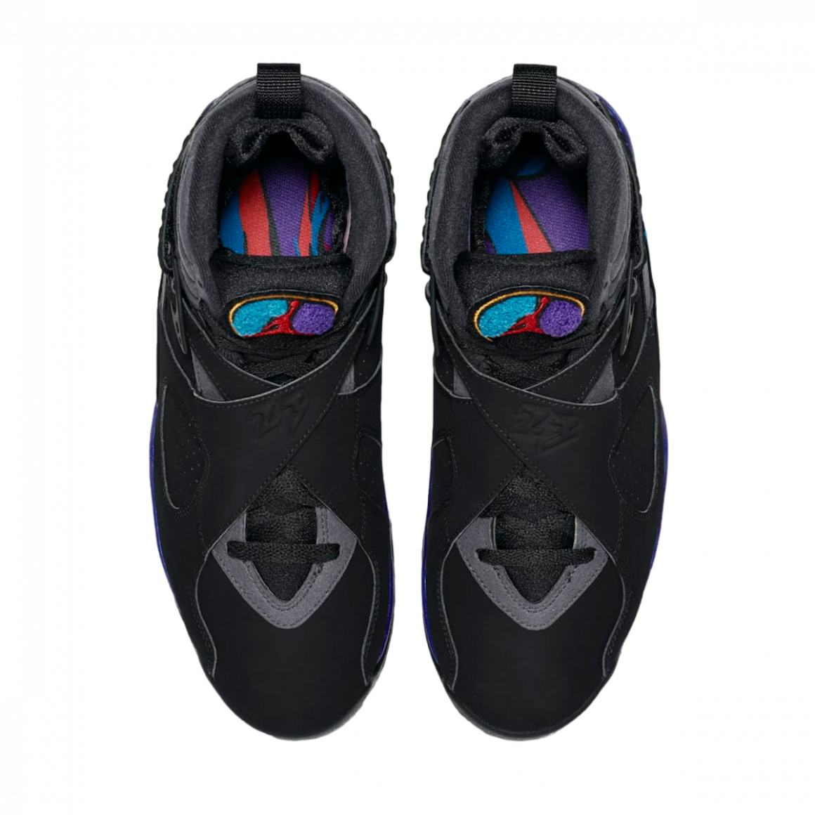 Le coloris Aqua est sans aucun doute l’un des plus emblématiques de la Air Jordan 8. Ce mélange de noir dominant, rehaussé par des accents de bleu aqua et de violet, crée un contraste saisissant qui a su résister à l’épreuve du temps. L’ajout de détails comme les motifs géométriques sur la semelle et la languette en chenille apporte une touche d’originalité qui a contribué à faire de ce modèle un incontournable. Depuis son lancement original, la Air Jordan 8 Aqua a été rééditée à plusieurs reprises, notamment en 2007 et 2015. Chaque réédition a suscité un engouement considérable, prouvant que ce coloris reste l’un des préférés des fans de Jordan Brand. Pour l’été 2025, Jordan Brand prévoit de relancer ce modèle avec des matériaux de qualité supérieure et une attention particulière aux détails, afin de capturer l’essence du design original tout en apportant une touche de modernité.