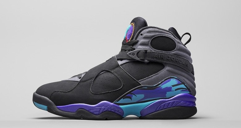 L’année 2015 est particulière pour Jordan Brand vu que la marque célèbre son 30ème anniversaire et profite de cet événement pour revoir la conception de ses sneakers afin de proposer des silhouettes proches de celles de l’époque. Originalement conçue en 1993, puis rééditée en 2007 et 2013, la Air Jordan 8 « Aqua » sera donc de retour pour cette fin d’année.