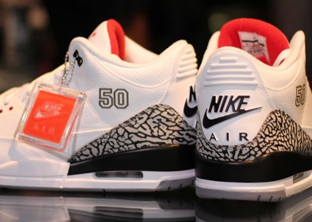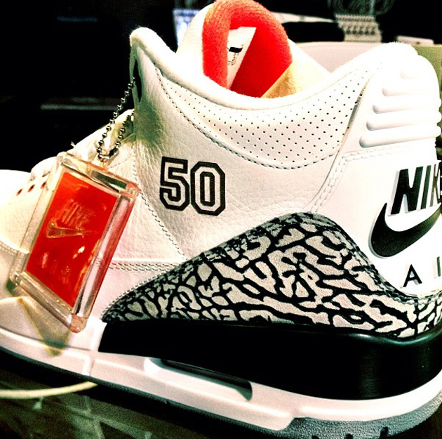 Une petite exclusivité a été présentée par DJ Clark Kent lors du week-end de l’anniversaire de Michael Jordan avec cette Air Jordan III ’88 un peu spéciale. L’âge de Jordan est en effet apposé sur le côté, à savoir le nombre 50. A priori cette paire devrait demeurer une Friends&Family et donc ne jamais être officiellement mise en vente.