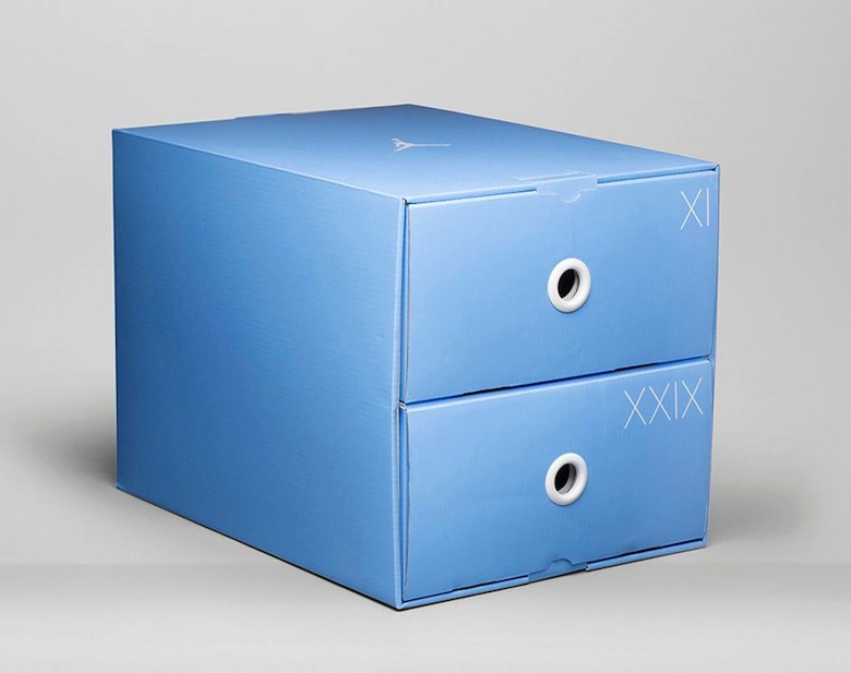 Les designers de la marque au jumpman ont retravaillé deux silhouettes de leur gamme afin de célébrer la performance, l’innovation et bien entendu le coloris « Legend Blue ». La Air Jordan XI arbore un upper au coloris « Pantone 84 » qui devrait rappeler aux amateurs de la marque la collection Air Jordan Pantone 84 de 2010 qui a été exposée au sein des House Of Hoops aux Etats-Unis. Le design de cette paire de sneakers est également complété par différentes pointes de blanc et de noir ainsi que par une semelle extérieure translucide bleutée que l’on retrouve sur différentes rééditions de l’année. La paire de Air Jordan XX9 dispose, quant à elle, d’une empeigne réalisée en « woven performance » dans des tons de blanc et agrémentée de son incontournable elephant print gris. On retrouve également cette fameuse semelle extérieure icy.