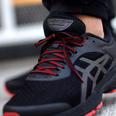 La paire, optimisée pour la course sur de longues distances, est extrêmement légère et pèse seulement 325 grammes. Très sobre, elle est à dominance noire agrémentée de plusieurs détails rouges appliqués à même la semelle ou encore sur le jeu de lacets bicolore. Sa construction en mesh jacquard redessiné offre une aération sans précédent adaptée pour les coureurs. Véritable concentré de technologies maison, l’une des particularités de la marque depuis sa création, la paire est notamment équipée d’une semelle en Flytefoam Propel et Lyte pour améliorer son confort ainsi que sa durabilité. On retrouve également la technologie GEL au talon de manière apparente tandis que la partie avant de la chaussure est dotée du Twist GEL. La semelle de confort est une Ortholite X-40. Enfin, un système de soutien équipe la partie médiane pour garantir une meilleure protection du pied. Pour compléter le design, les équipes en charge du design ont réalisé un effet irisé et réfléchissant à la lumière au logo latéral Asics.
