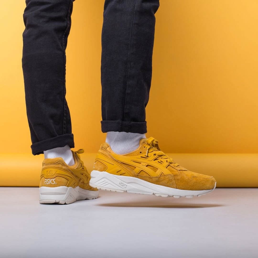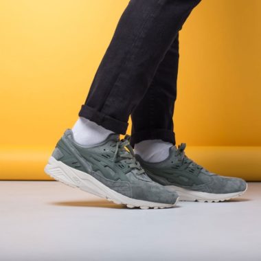 Pour rappel, l’inspiration du modèle, imaginé par le designer Toshikazu Kayano, est tirée de l’exosquelette protégeant l’anatomie d’un coléoptère. L’Asics Gel Kayano Trainer, qui était dédiée à l’origine à la pratique du running, est présentée ici avec une empeigne en daim dans deux teintes différentes, kaki (agave green) et jaune moutarde (golden yellow). Son empeigne est en cuir suédé avec un chausson intérieur en néoprène pour un plus grand confort. Les deux éditions sont assemblées sur une semelle Asics Gel en blanc cassé.