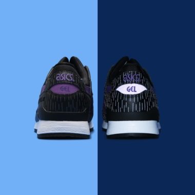 Pour la fin du mois d’octobre, Atmos opte pour le côté inédit pour cette Asics Gel Lyte 3 Midnight Tokyo. Prévue pour la saison en cours, la paire de sneakers sera entièrement recouverte de cuir lisse noir ou violet. Lorsque qu’on expose la paire à une lumière directe ou à un flash, on découvre alors toute l’originalité de la réalisation. En effet, on aura ici droit à des empiècements en 3M visibles avec le « rain-camo » et des parties au rendu iridescent comme à l’avant du pied ou derrière le logo Asics sur les côtés.