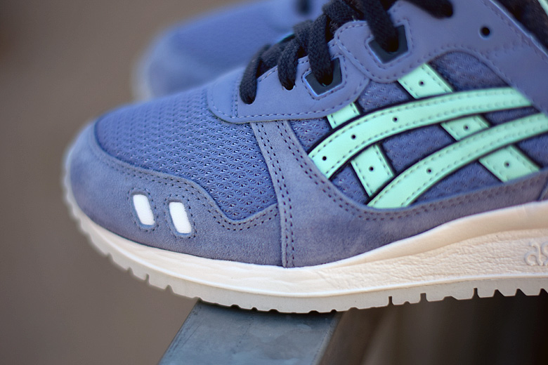 Mais cette Asics Gel Lyte 3 Stone Wash/Light Mint n’est pas une série exclusive. Elle appartient en effet à la collection Summer 2016. La paire est en daim et mesh dans une teinte bleutée qui pourrait également s’apparenter à un gris. On retrouve des accents de mint sur les différents logos ainsi qu’à l’intérieur des sneakers. Enfin, c’est le chausson lui même qui est confectionné dans un mesh gris anthracite. Le rendu du modèle est particulièrement réussi et convient parfaitement à la saison de l’été.