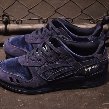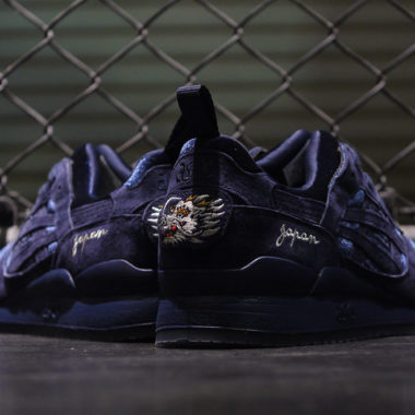Asics réitère l’opération en cette fin d’année 2017 et propose une Gel Lyte 3 bleue marine. Tout comme la première chaussure, le design est inspiré d’une veste japonaise emblématique faite de satin et dont le rembourrage et les différents motifs qui y sont brodés en ont fait sa réputation à l’international. L’appellation « Japan » est toujours affichée en blanc sur le côté au niveau du talon.