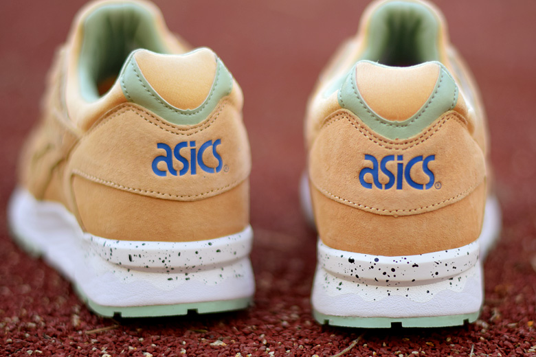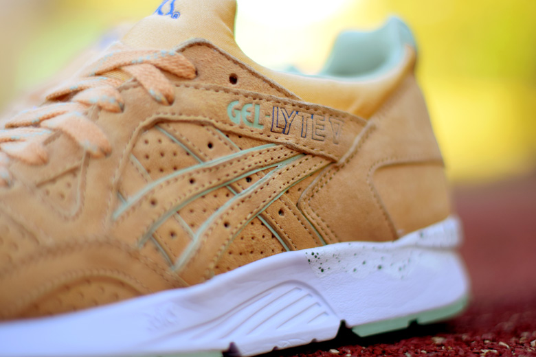 Surnommée « April Showers » cette paire de sneakers tient son coloris de la météo et du paysage que l’on peut observer à cette période de l’année avec la nature qui bourgeonne à nouveau. C’est avec un cuir suédé premium beige que cette Asics Gel Lyte 5 a été réalisée. Plusieurs touches de vert pastel présentes à l’intérieur du chausson en néoprène, sur la semelle ainsi que sur les logos Asics viennent compléter le coloris de cette nouveauté.