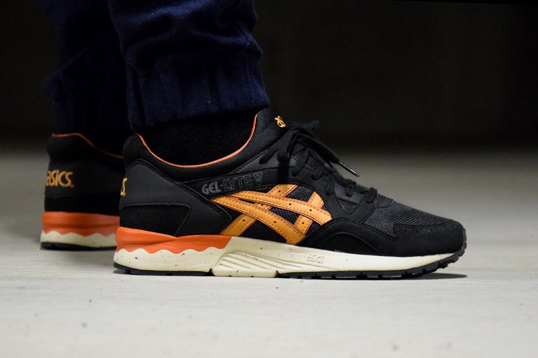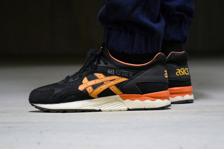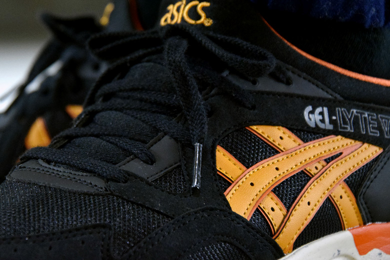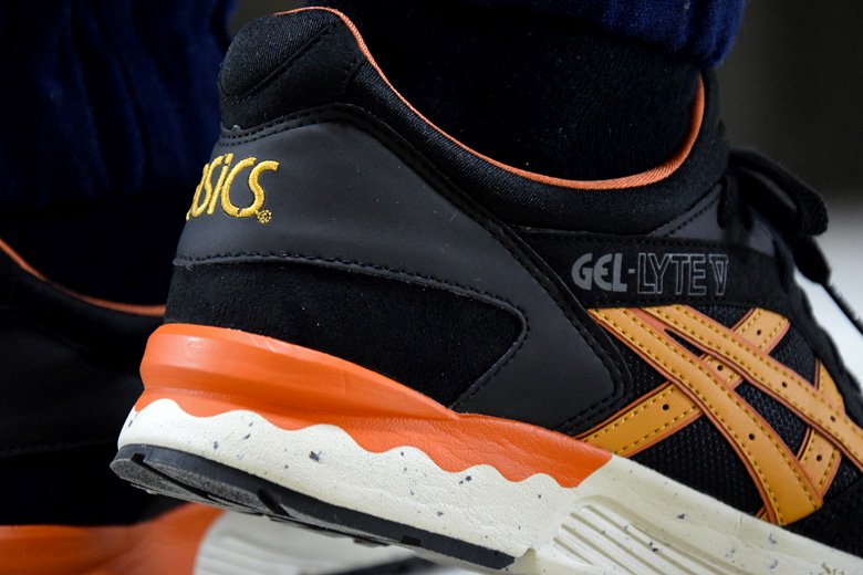 Ce combo avait d’ailleurs été appliqué sur l’Asics Gel Lyte 3 en 2013 avec une première version Black/Tan. On a droit ici au même mix de matériaux avec plusieurs types de cuir et du mesh. L’intégralité de l’empeigne est noire avec quelques touches de marron clair (tan) et d’orange. Le rendu porté est très joli et même meilleur qu’une grande partie des collaborations dont on nous abreuve ces derniers temps.