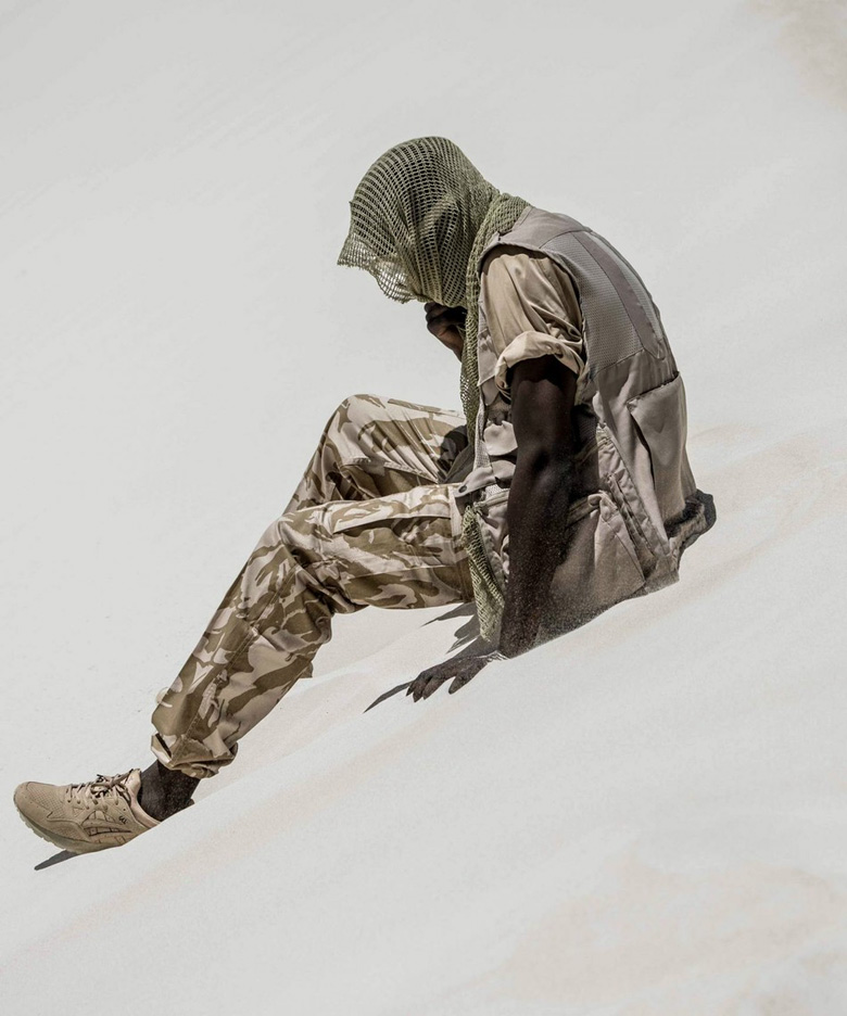Alors que la première en cuir disposait d’un coloris mêlant le blanc et le noir pour symboliser le concept d’ombres et lumières, ces nouvelles sneakers s’inspireront d’un thème militaire.