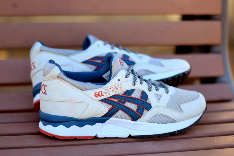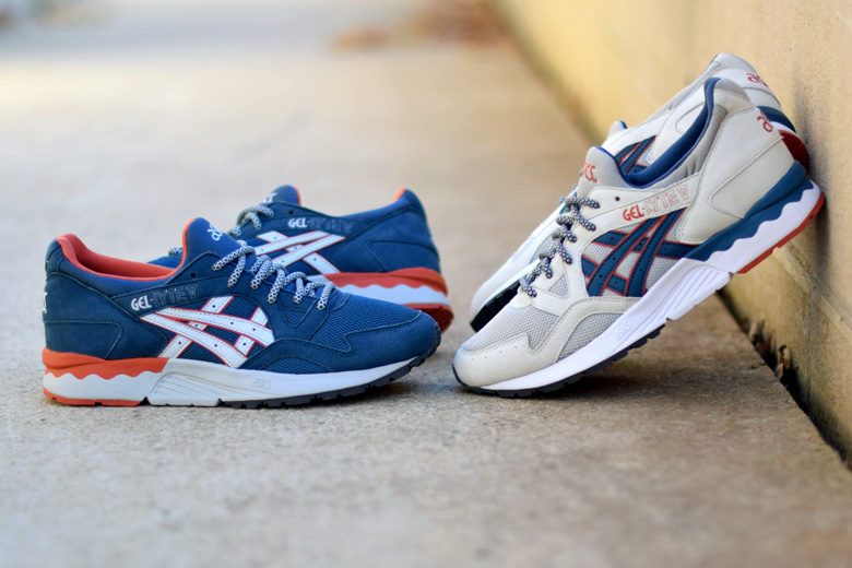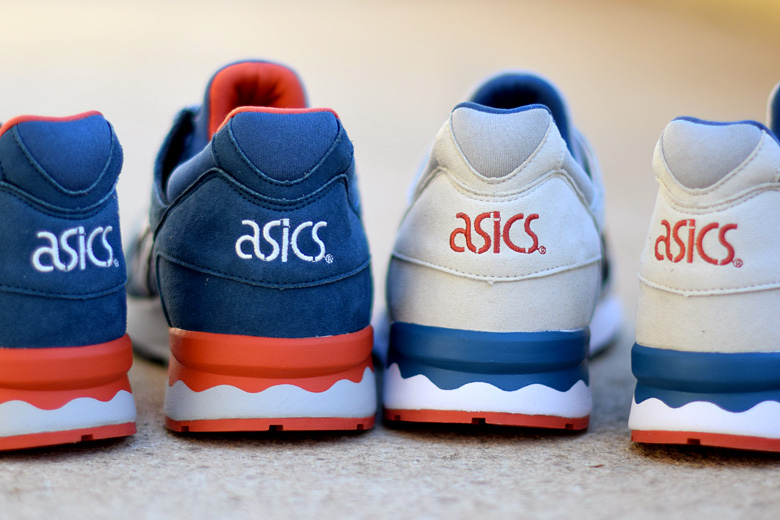 Deux belles paires d’Asics Gel Lyte 5 concoctées par Asics sont proposées dans une déclinaison de couleurs typiquement de saison. Des couleurs estivales comme le beige clair, le bleu, l’orange et le blanc ont été choisies par la marque japonaise pour venir habiller ces deux belles Gel Lyte 5. Les paires sont constituées d’une empeigne en daim et mesh. Ce sont des lacets ronds qui accompagnent les sneakers, les fameux rope laces.