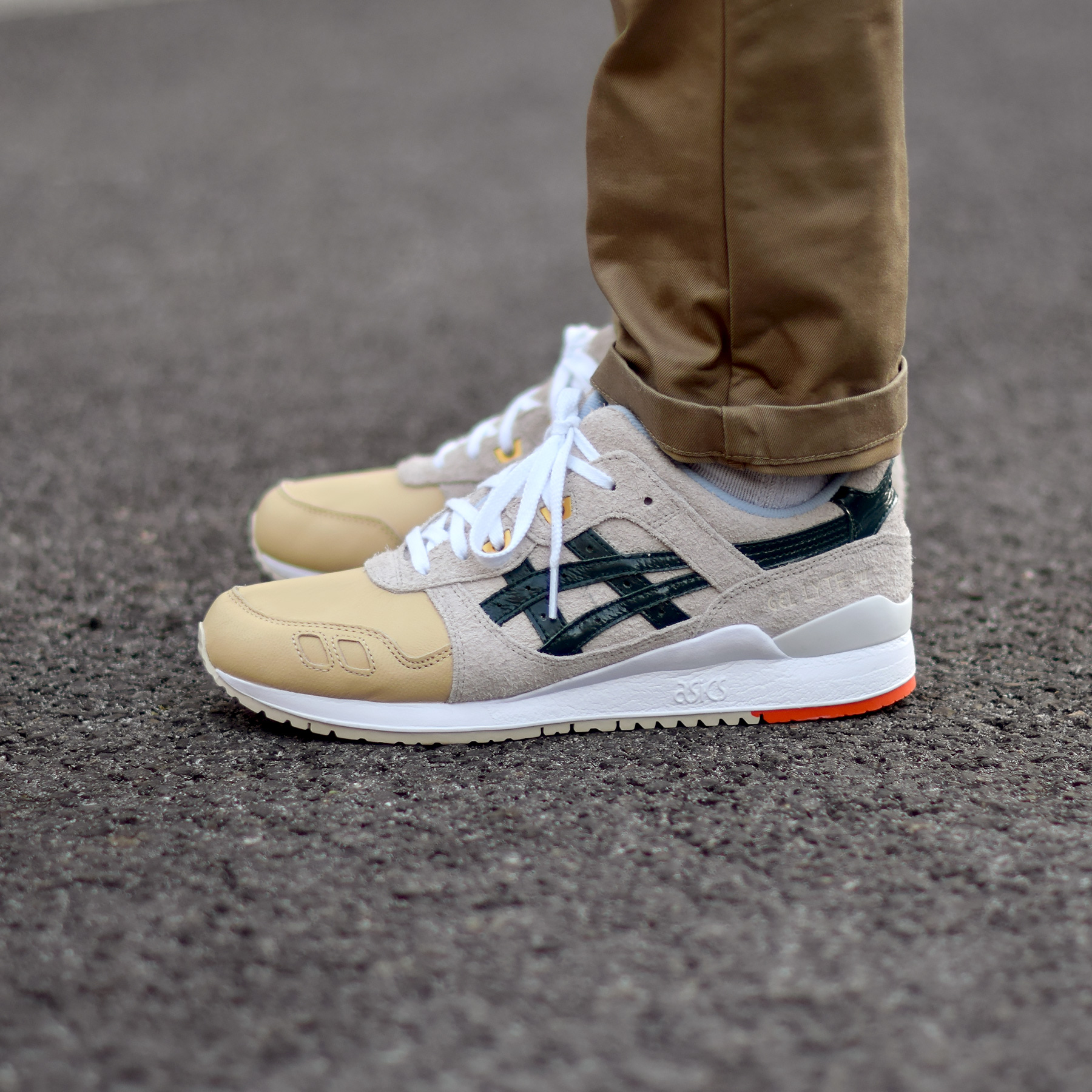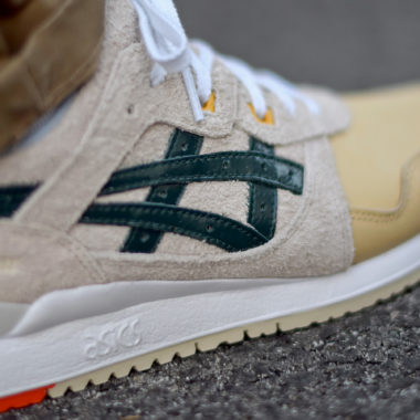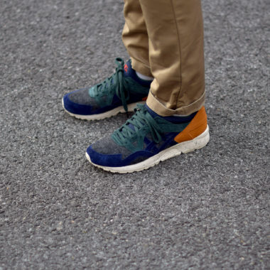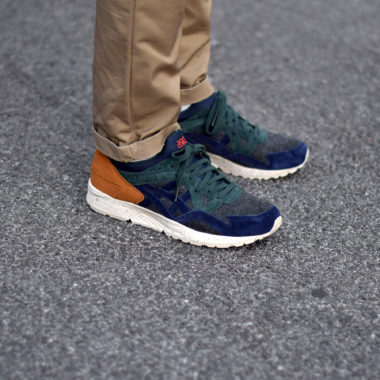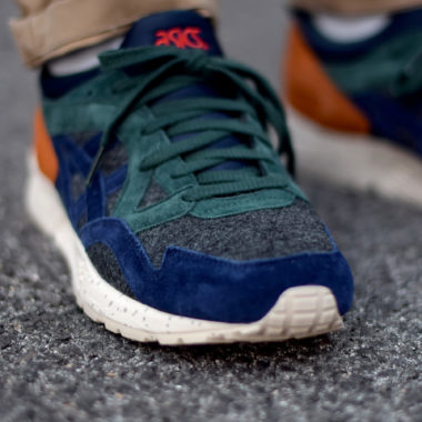 À l’approche des célébrations, ce sont donc deux paires qui viennent de sortir avec une Asics Gel Lyte III et une Asics Gel Lyte V. La première mixe plusieurs types de matières : cuir beige sur l’avant du pied, daim sur le reste de l’empeigne et cuir verni pour les stripes dans une teinte verte qui rappelle le conifère. La GL5 combine de la laine gris foncé avec du cuir suédé décliné dans trois couleurs : bleu marine, vert sapin et marron clair. La couleur rouge, qui incarne parfaitement Noël, a été apposée sur chaque paire, sur la semelle ou la languette.