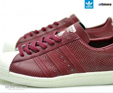 Par Sneakers.fr Sneakers Adidas 18 novembre 2010Atmos x Adidas – Superstar 80's SnakeskinLa boutique japonaise Atmos ressort pour décembre une Adidas Superstar avec un traitement façon peau de serpent. Comme la première collaboration, cette paire devient phosphorescente dans le noir. Découvrez plus d’images de ce modèle dans la suite.