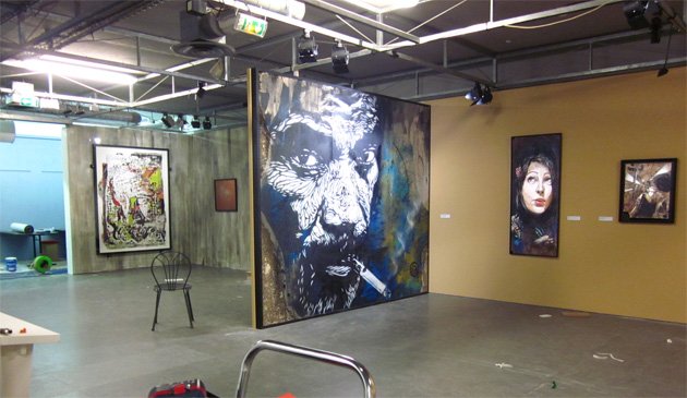 Au total plus de 70 oeuvres sur des supports très éclectiques : panneaux de signalisation, toile, palissades de bois, linoléum, boîtes aux lettres, tôle, fragments d’affiches, sont exposées. Pochoir, peinture aérosol, mosaïque, scotch, fusain, papier découpé, résine, aquarelle…sont autant de techniques et de matériaux utilisés aujourd’hui par ces artistes. Des vidéos montrent les artistes en action et des vitrines présentent le matériel de certains dans l’exposition.