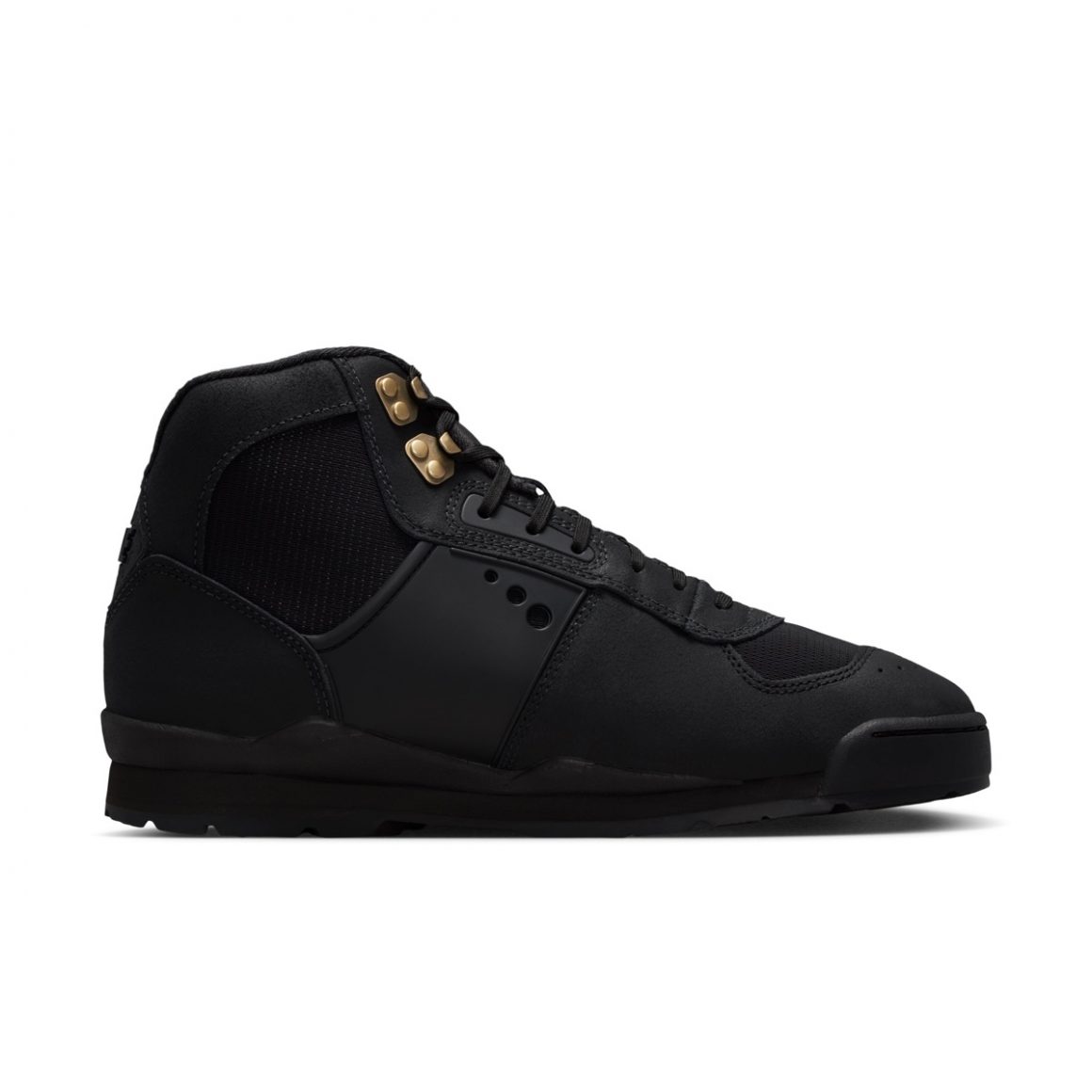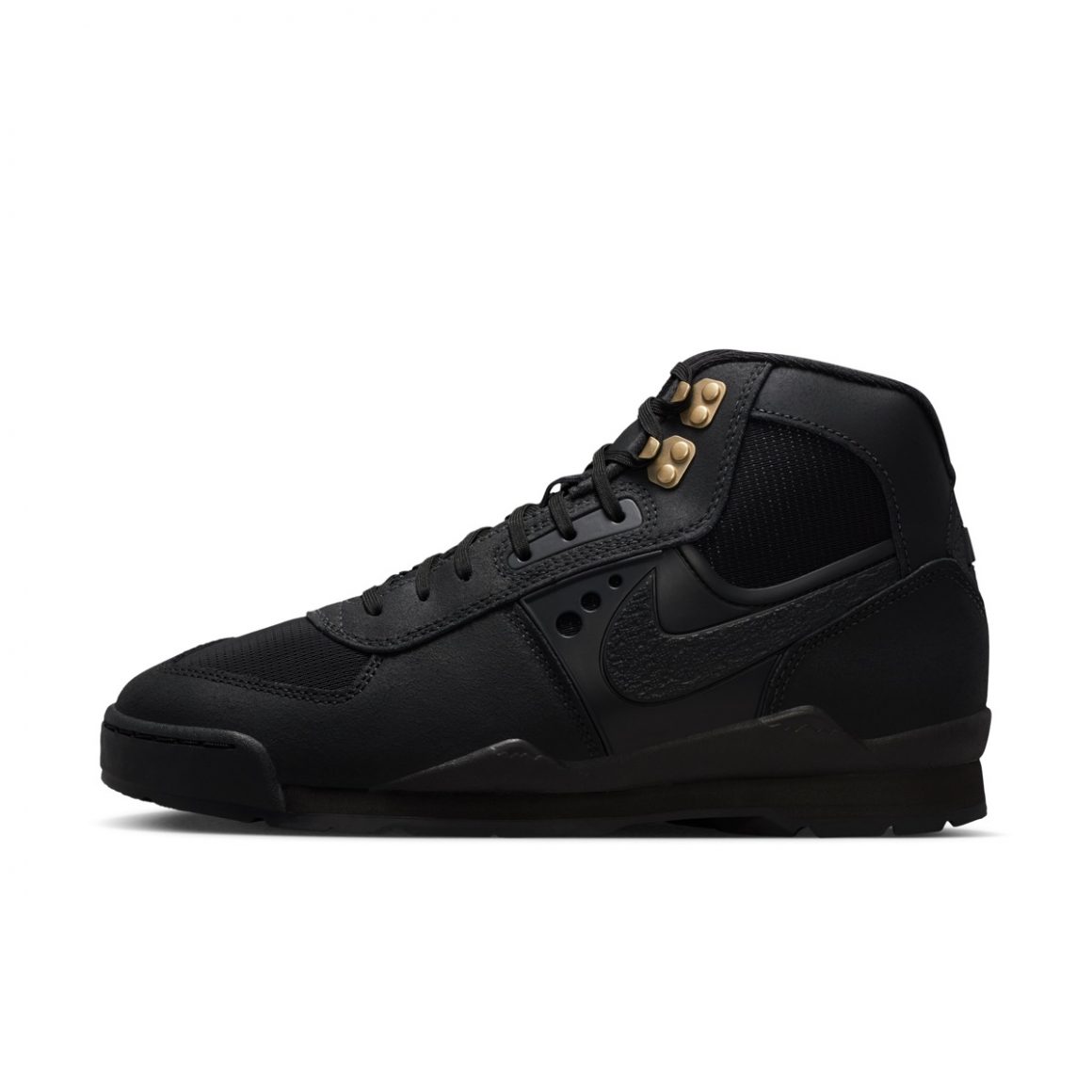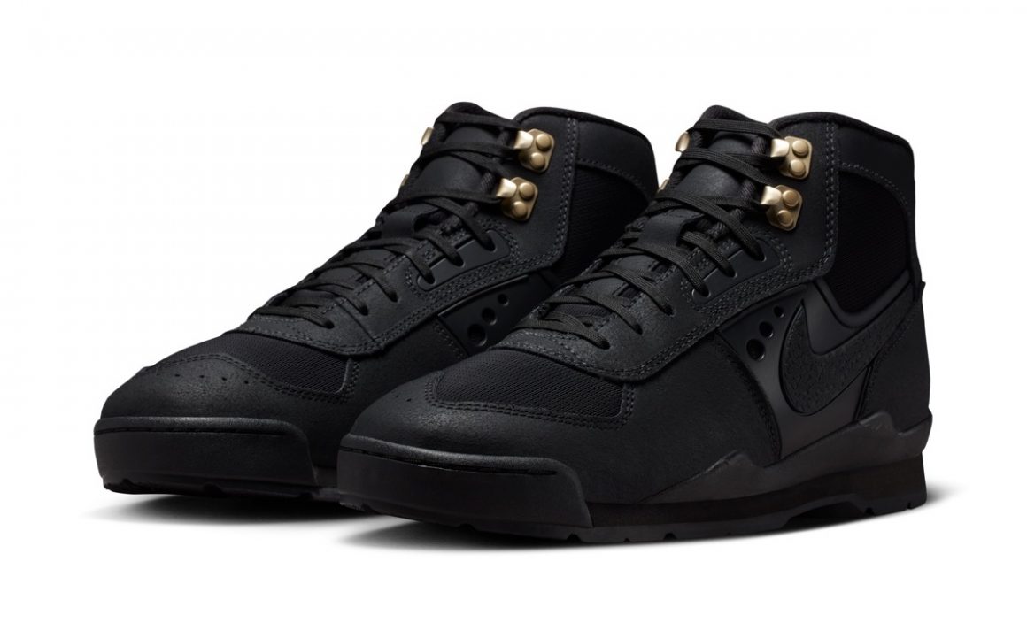 Pour clore ce premier drop de ce modèle outdoor, la Nike Baltoro SP Black joue la carte de la discrétion avec une habillage totalement noir. Cette déclinaison porte néanmoins des crochets de laçage métalliques dorés, attirant toute la lumière.