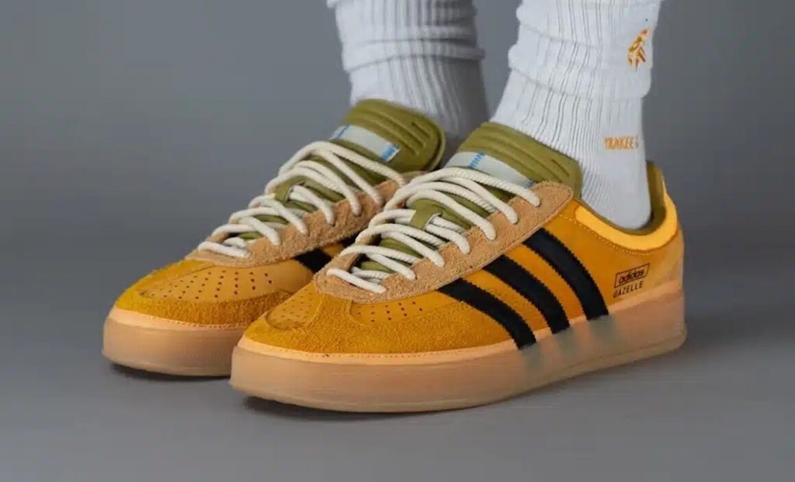 Depuis plusieurs années, Bad Bunny s’est imposé comme l’un des partenaires les plus influents d’adidas. Après avoir revisité des silhouettes comme la Campus ou développé ses propres modèles, l’artiste portoricain continue d’explorer les classiques de la marque allemande avec une vision très personnelle. Pour l’automne 2026, cette collaboration se poursuit avec une nouvelle interprétation de la Gazelle Indoor, baptisée Solar Gold. Attendue pour le mois d’octobre 2026, cette version s’inscrit dans la continuité des nombreuses Gazelle imaginées par le chanteur, un modèle désormais central dans son partenariat avec adidas. Avec cette paire, Bad Bunny mêle une fois de plus héritage terrace culture et esthétique contemporaine, transformant une silhouette rétro en objet de mode audacieux.