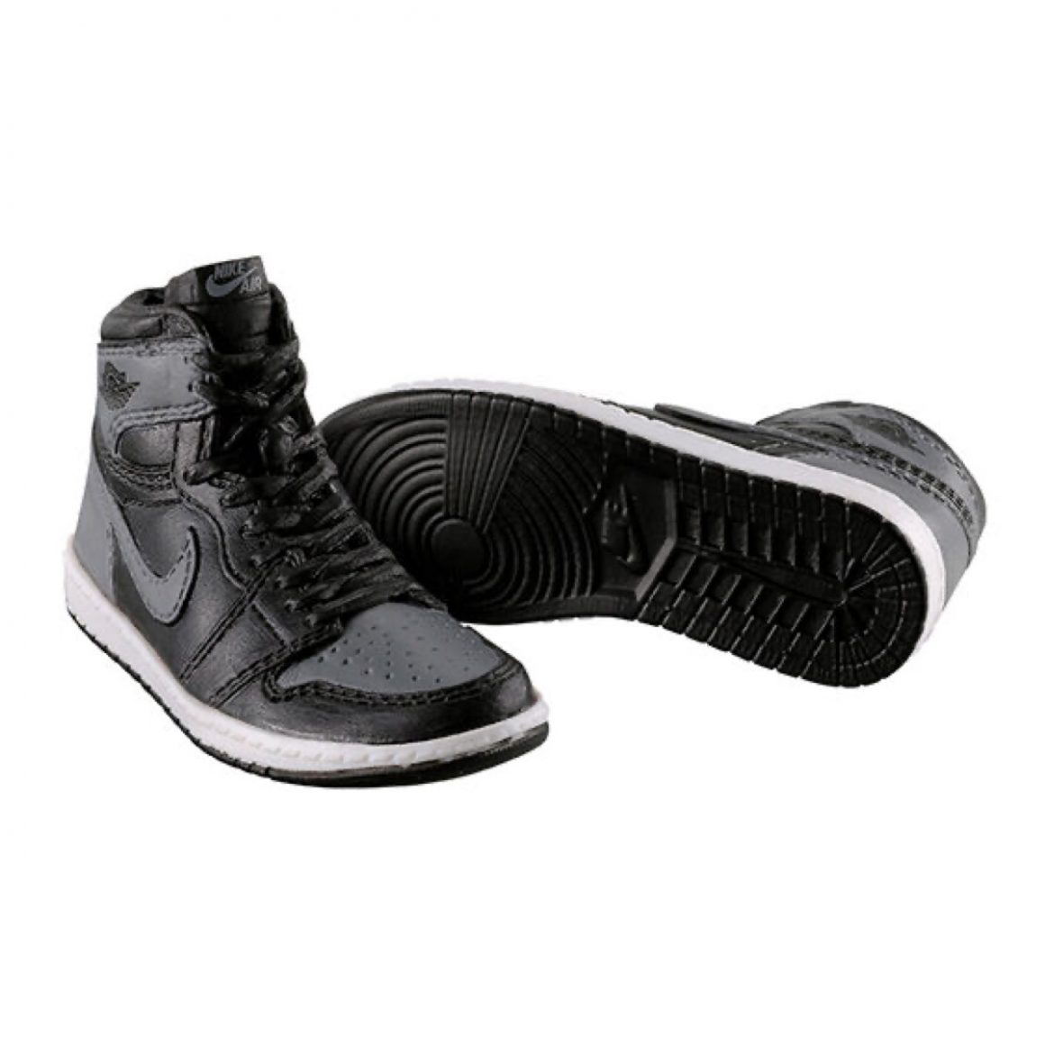 Cette collection propose une série de miniatures reprenant les coloris les plus emblématiques de la Air Jordan 1. On y retrouve les classiques Bred, Chicago, Royal, mais également les coloris du célèbre Metallic Pack. Chaque capsule affiche une palette authentique, une finition soignée, et l’impression que la paire a été moulée à l’échelle 1/10 sans compromis sur le design. Le détail frappe : les semelles présentent les motifs circulaires caractéristiques de la Jordan 1 et même le talon conserve la division du bloc. Le Swoosh, bien que miniature, conserve son énergie visuelle. Tous ces éléments donnent à l’objet une dimension d’archive vivante, capable de raviver la mémoire d’un sneakerhead.