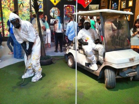 Nous vous avions présenté l’installation de Banksy à Art in the Streets mais celle-ci a déjà évolué. Adepte des surprises en tous genres, l’artiste Britannique a modifié quelque peu ses travaux en ajoutant de nouvelles oeuvres notamment une partie de golf un peu spéciale…