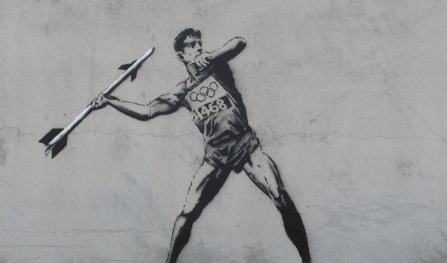 L’artiste Britannique Banksy ne pouvait pas passer à côté des Jeux Olympiques de Londres qui débuteront en fin de semaine. Il n’a pas encore précisé où il avait réalisé ces deux artworks (un autre présenté dans la suite).