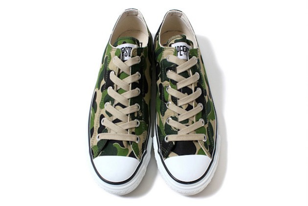 La marque japonaise A Bathing Ape réédite, pour l’été 2014, l’un des premiers modèles d’APE STA dans le camouflage original ‘ABC’. La paire arbore des lacets beiges et les habituelles étoiles sur le devant de la semelle. Vous pouvez retrouver le modèle sur le site japonais de BAPE et très certainement bientôt sur le site européen de la marque.