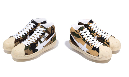 La marque japonaise A Bathing Ape décline son modèle Skullsta (largement inspiré des Superstar d’Adidas) dans une version montante. En voici trois coloris dont deux reprenant les camouflages originaux de la marque.