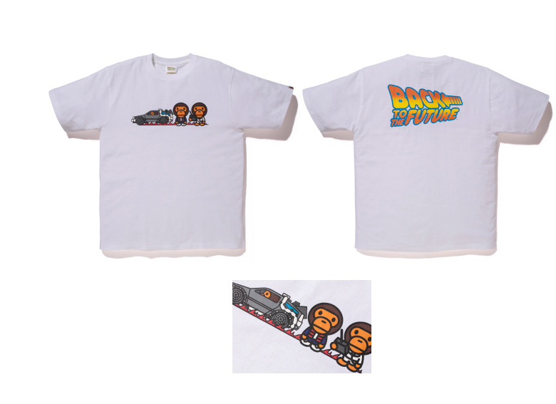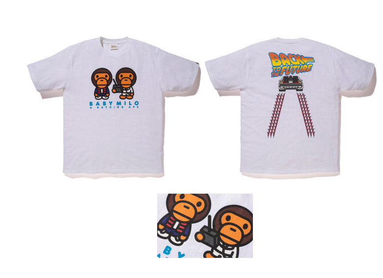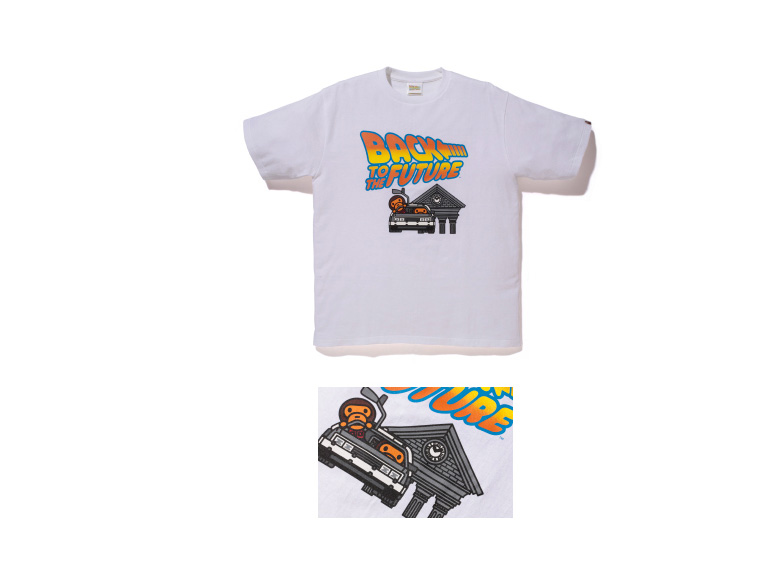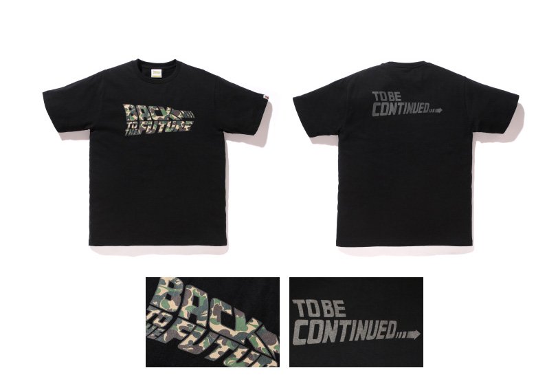 Le premier tee-shirt arborera le logo Back to the Future retravaillé avec le camouflage Bape ainsi que des inscriptions en matière réfléchissante.