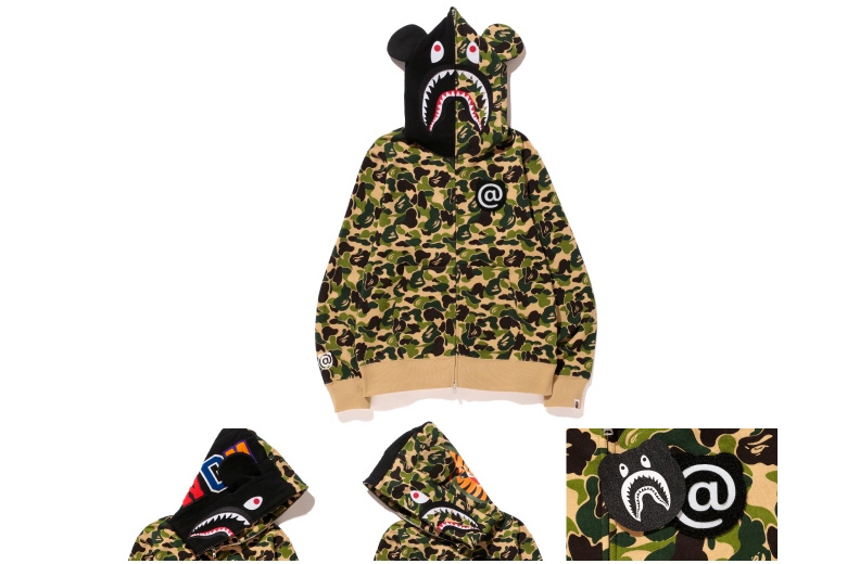 L’une des pièces phare de la marque A Bathing Ape est certainement le sweat à capuche qui, en se fermant jusqu’en haut, représente une tête de requin, autrement dit le Bape Shark Hoodie.