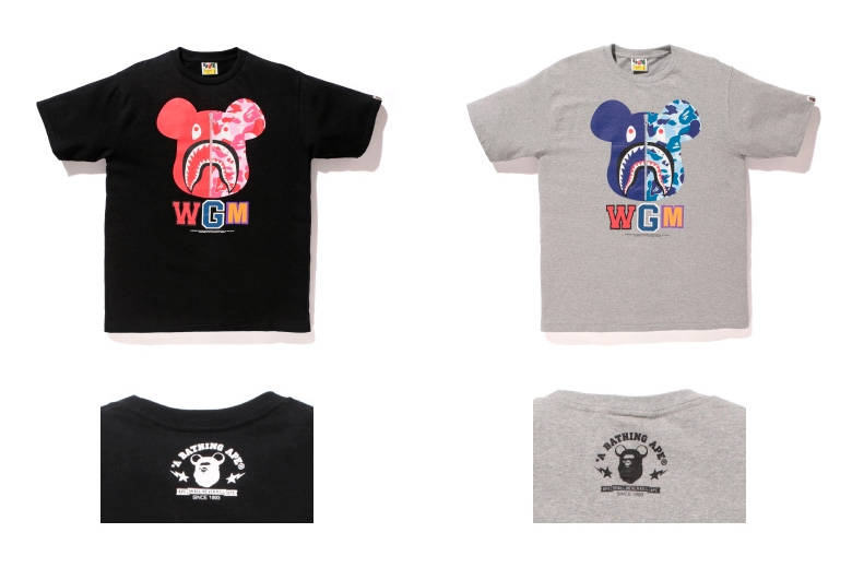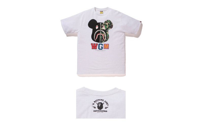 Pour la partie textile, il y aura deux tee-shirts et trois versions du Shark Hoodie dont une avec le célèbre camouflage Bape.