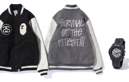 La collaboration entre Bape et Stussy s’étend sur 2011 puisque plusieurs pièces sont prévues pour le mois de janvier. Au programme deux varsity jackets avec les logos sur la poitrine et une montre Luminox. Luminox crée assez régulièrement de très jolies pièces avec Stussy notamment une montre pour son 25ème anniversaire et une plus récente avec l’artiste Delta.