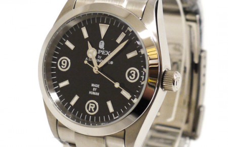 Bape aime bien rendre hommage ou s’inspirer des classiques des meilleures marques (Air Force 1 chez Nike, Superstar chez Adidas…). Concernant les montres, la marque a toujours eu un faible pour Rolex et a imaginé des modèles « Submariner », « Daytona »… Pour l’automne 2010, c’est la mythique « Explorer » qui est déclinée en version Bape.