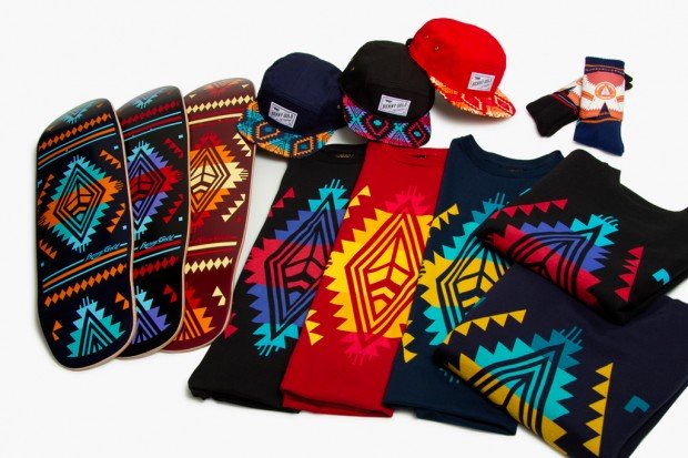 La marque du designer californien Benny Gold sort pour sa nouvelle collection plusieurs pièces utilisant l’imprimé navajo. Découvrez donc ci-dessous les boards, les tee-shirts, les sweaters, les casquettes et les chaussettes imaginés.
