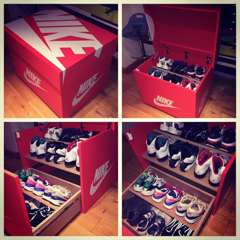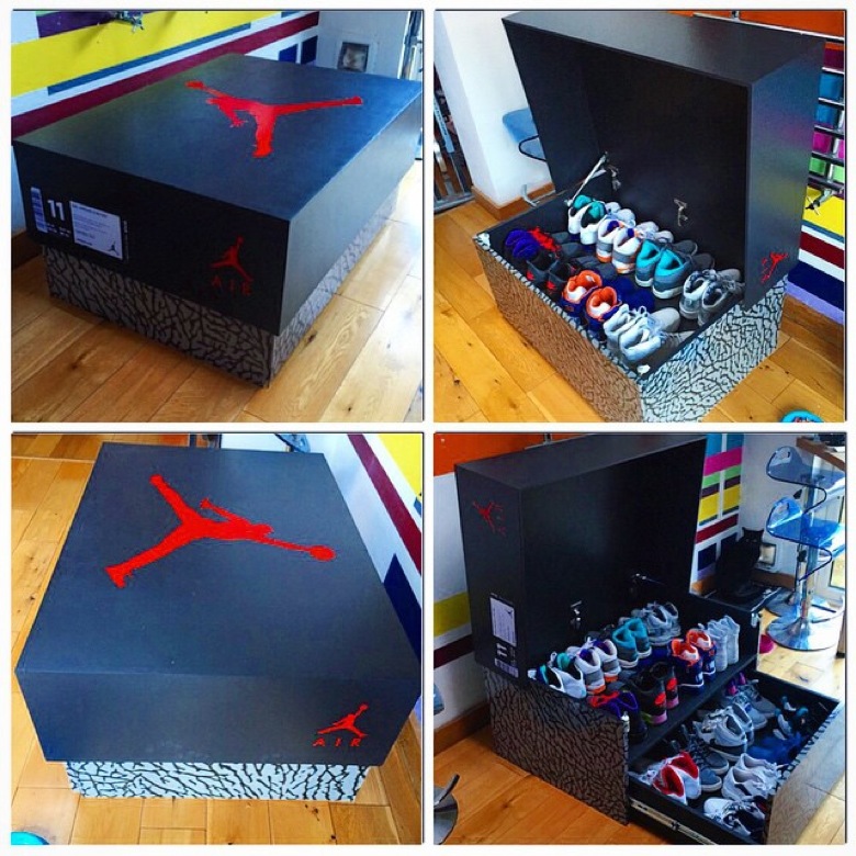L’Anglais Woodist propose désormais son savoir-faire aux autres en mettant en vente des boites sur-mesure. L’objet a un coût non négligeable et démarre à 400€ pour une boite dont les mesures sont 100 cm x 70 cm x 50 cm. Si votre budget le permet, il peut faire ce que vous souhaitez : boite Jordan, boite Nike, boite New Balance etc. Il a même une boite Louboutin sur son compte Instagram. Concernant les tailles, il peut aussi s’adapter à votre demande.