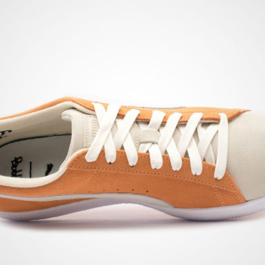 La paire s’inscrit dans les précédentes créations de par sa construction sans faille. L’empeigne est nappée dans un suede orangé du plus bel effet et est sublimé par des touches beige, notamment sur le côté et la toebox jusqu’en haut de la languette. On retrouve le coloris orange sur la semelle extérieure, alors que la semelle intermédiaire est blanche tout comme le jeu de lacets fourni. « Bobbito » apparaît dans un lettrage doré sur le côté près de la cheville ainsi que sur le semelle de confort aux côtés du Puma. Ce même logo est matérialisé dans une teinte dorée similaire tout comme le branding Puma. En addition, l’inscription « Where’d You Get Those » a été appliquée à l’intérieur de la chaussure, sur le rembourrage même. Une différence majeure par rapport aux modèles précédents qui arboraient le nom du livre sur l’extérieur.