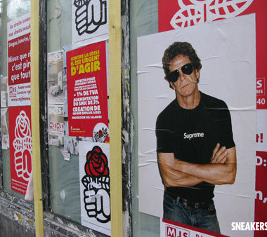 La marque new-yorkaise ne fait décidément rien comme les autres. Alors que l’on était habitués à voir de l’affichage sauvage sur New York voire Tokyo lors d’une nouvelle sortie Supreme, Paris a eu le droit à son lot placardé à côté d’affiches militantes…