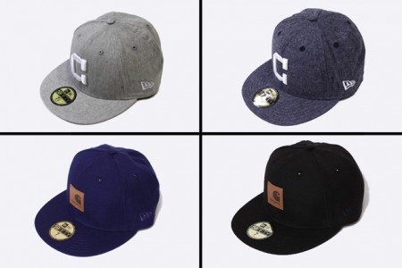 Carhartt et New Era continuent à travailler ensemble pour ce printemps et ont concocté deux sortes de 59Fifty Fit. La première est déclinée en deux coloris, noir et bleu, avec un patch en cuir sur le devant. La seconde est déclinée en chambray gris ou bleu avec la lettre C cousue sur l’avant. Tous ces modèles sont disponibles sur SNKRS.