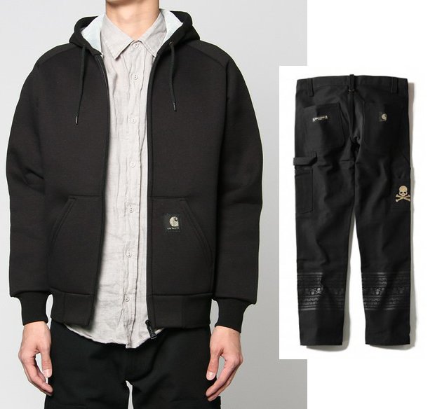 La marque japonaise Mastermind réalise depuis plusieurs saisons une collection commune avec Carhartt. Pour cet hiver, ce sont un Thermal Hoodie Zip et un Double Knee Pant qui sont prévus.