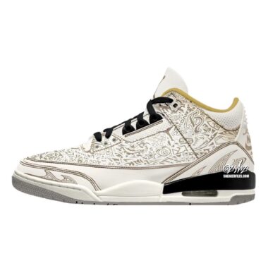 Lancée en 1988, la Air Jordan 3 est la toute première paire à avoir été dessinée par Tinker Hatfield, l’ancien architecte reconvertit en designer. Ses courbes ont d’ailleurs séduit Jordan et l’ont convaincu de renouveler son contrat qui le liait à la firme américaine. Son look et sa construction semi-montante tranchent sensiblement avec les deux premières Jordan. L’un des détails les plus frappants est l’application du désormais célèbre elephant print. Il s’agit également de la première chaussure de basketball à être dotée de la technologie Air visible développée par Nike. Autre nouveauté, l’arrivée du logo Jumpman en lieu et place du traditionnel logo «Wings » introduit sur l’Air Jordan première du nom. Il est depuis devenu le logo officiel de l’équipementier américain. Michael Jordan porta la paire durant la saison NBA 1987-19877 durant laquelle il reçut pour la première fois le titre de meilleur joueur. C’est également avec une Air Jordan 3 aux pieds, en l’occurrence le coloris classique White/Cement Grey, qu’il remporta le mythique concours Slam Dunk en 1988 et qui contribua à la renommée du modèle. Trois autres coloris iconiques furent originellement produits : White/Fire Red, True Blie et Black/Cement Grey.