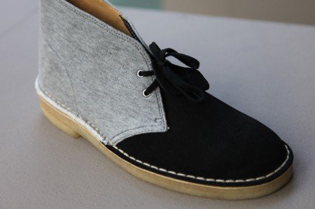 La marque japonaise Loopwheeler a crée une collection avec Clarks. Deux modèles sortiront, une Desert Boot et une Wallabee. On reconnait le fleece (toile coton, molleton) utilisé par Loopwheeler sur ses vêtements qui est cette-fois ci appliqué sur une chaussure.