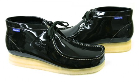 La boutique de Boston, Concepts, va sortir une nouvelle collaboration cette fois-ci avec la marque Clarks. Le mythique modèle Wallabee est revu dans une version cuir verni. Trois coloris sont prévus pour le mois de septembre : noir, bleu marine et aubergine.