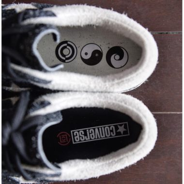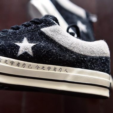 Ce classique de 1974 sera à nouveau le support pour une collaboration avec le label hong-kongais, Clot. Une fois de plus, la marque du designer Edison Chen s’inspire de ses origines pour la réalisation de cette Converse One Star Clot. En effet, le thème utilisé ici est le Yin Yang comme le montrent les différents pictogrammes présents à différents endroits sur la paire. Il est retranscrit par l’utilisation d’un cuir « hairy suede » au coloris noir ou blanc pour faire référence à la complémentarité qu’évoque cette philosophie chinoise. Le co-branding Converse x Clot est visible à l’intérieur du pied. Autre détail original, le dessous des semelles extérieures est décliné en noir ou en blanc pour renforcer cette référence au Yin Yang.