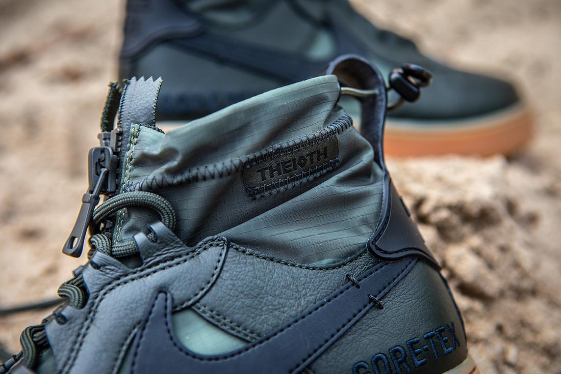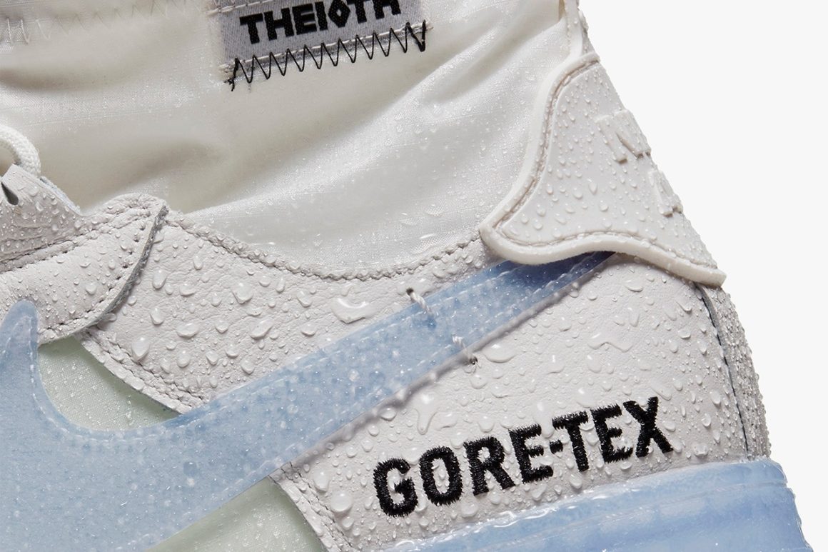 L’annonce de cette sortie tombe à point nommé avec le début de la saison automnale et avec elle le retour du froid et de l’humidité. Pour y faire face, la marque au Swoosh a imaginé six paires équipées de la technologie Gore-Tex renforcées de ce matériau très technique. Son nom est également cousu sur un patch apposé sur la languette ainsi que sur la partie latérale proche du talon.