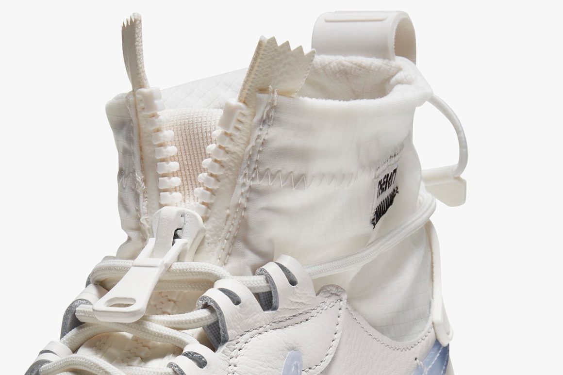 Les trois versions High ont également la particularité de reprendre la semelle et la toebox renforcées de la Nike Air Force 1 Duckboot ainsi que des éléments de design de la Nike SF Air Force 1, deux moutures parées pour affronter les éléments. Les trois paires basses sont plus classiques et reprennent le design imaginé par Bruce Kilgore en 1982. La conception est également différente selon les sneakers concernées. Les trois moutures Low combinent des éléments en mesh et en cuir tandis que les paires montantes sont principalement conçues en cuir avec des empiècements techniques, légers et résistants à l’eau. Le choix des coloris est également diversifié, tantôt avec des paires sobres et adaptées pour la saison, tantôt avec des moutures plus éclatantes. C’est notamment le cas du modèle Yellow ou encore de la version White qui contrastent avec l’itération Wheat plus conventionnelle.