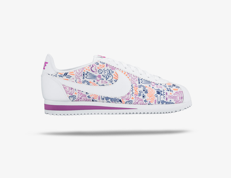 La marque de l’Oregon semble bien apprécier le travail de Steven Harrington, à juste titre, et une collection de sneakers revue par ce dernier sera bientôt proposée. C’est un joli imprimé avec plusieurs dessins, motifs et personnages propres à l’univers de l’artiste que l’on retrouvera sur des Nike Cortez, Nike Roshe Run et Nike Internationalist. Bien que proposées dans une grille de tailles féminines, ces sneakers Nike x Steven Harrington conviendront également aux hommes.