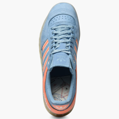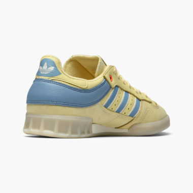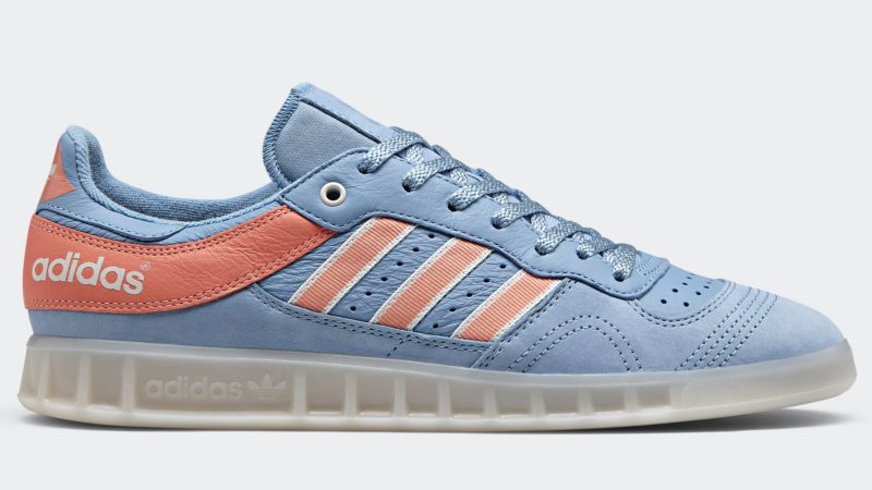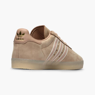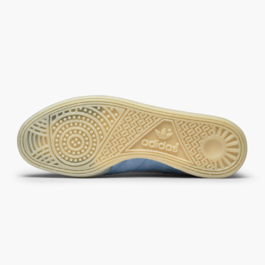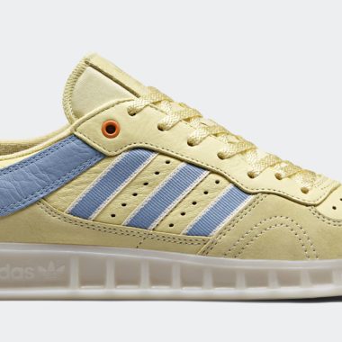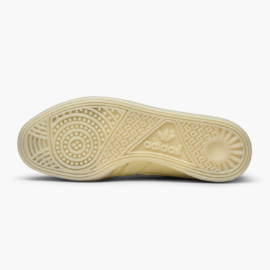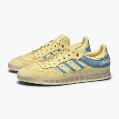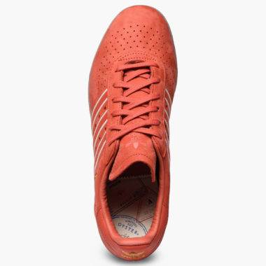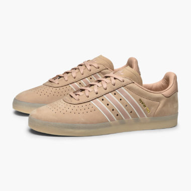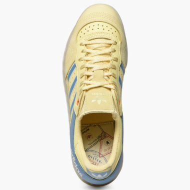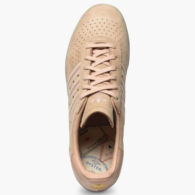 La Handball Top et la 350 ont été sélectionnés pour ce partenariat. La 350 est un modèle OG qui avait fait son retour en 2016 au sein de la série adidas Originals Spezial. La Handball Top était destinée à un usage sportif d’intérieur lors de sa sortie originelle en 1987. La paire a également été remise au goût du jour par les équipes adidas et est régulièrement proposée dans des coloris originaux comme ici, jaune et bleu. Des empiècements de matériau similaire sont aussi présents, de couleur saumon et bleu pastel. Pour cette sortie, la paire arbore une empeigne en cuir suédé premium sur laquelle sont greffés des empiècements de suede. Une semelle cupsole fabriquée en caoutchouc semi-transparent complète leur look. L’adidas 350 possède elle aussi une tige en cuir suédé déclinée en rouge et marron clair. Un logo signature « 350 » doré vient agrémenter le design ainsi qu’une semelle en gomme semi-translucide. La paire est également construite en suede texturé et perforé pour sa tige basse tandis que la doublure est en cuir. Enfin, chacune des paires affichera l’inscription Oyster Holdings sur sa semelle de confort à la manière de tampons de passeport.