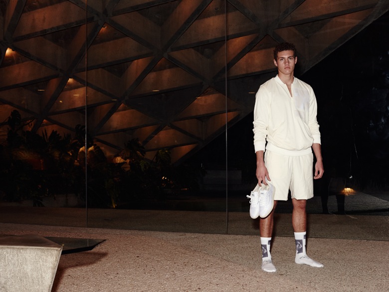 Si on les a souvent vus reprendre des thèmes venus de sports populaires aux USA comme le basket, le football ou le baseball, on les retrouve cette saison sur un terrain peu exploité jusque-là, celui du tennis. Pour ce faire, Hall of Fame s’est associé à Reebok afin d’imaginer une collection autour de ce sport avec comme pièce centrale une réédition de la Reebok Club C. La marque de Los Angeles a donc retravaillé toute une série de pièces textiles au coloris écru et, avec comme détail original, des inscriptions « glow in the dark » (phosphorescentes) à différents endroits. Cette particularité sera également présente à l’intérieur du pied de la Reebok Club C.