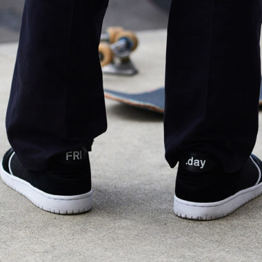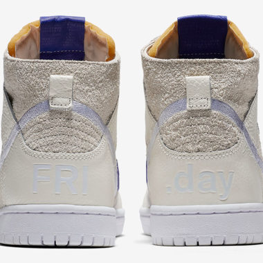 Trait commun aux deux chaussures, l’inscription FRI et .day apparaît. Elle est respectivement brodée sur chaque paire et est rappelée sur la semelle intérieure en cuir. L’idée ici est de célébrer les « Friday Nights ». Globalement, cette collection s’amuse à déconstruire la silhouette iconique de la marque américaine.