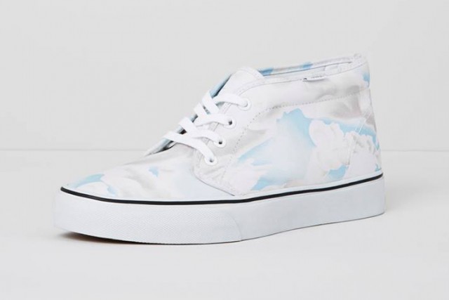 C’est déjà la cinquième collection que Vans et Kenzo sortent ensemble. Pour cet automne, deux paires de Vans Chukka et deux paires de Vans Slip On sont sur le thème « nuage » et « flying tigers ». Enfin deux Vans Authentic possèdent un motif façon « éclair ». L’ensemble de la collection Vans x Kenzo de cet automne est présentée dans la suite de la news. Elle est en général disponible dans les boutiques Kenzo et chez quelques-uns des revendeurs de la marque de prêt-à-porter.
