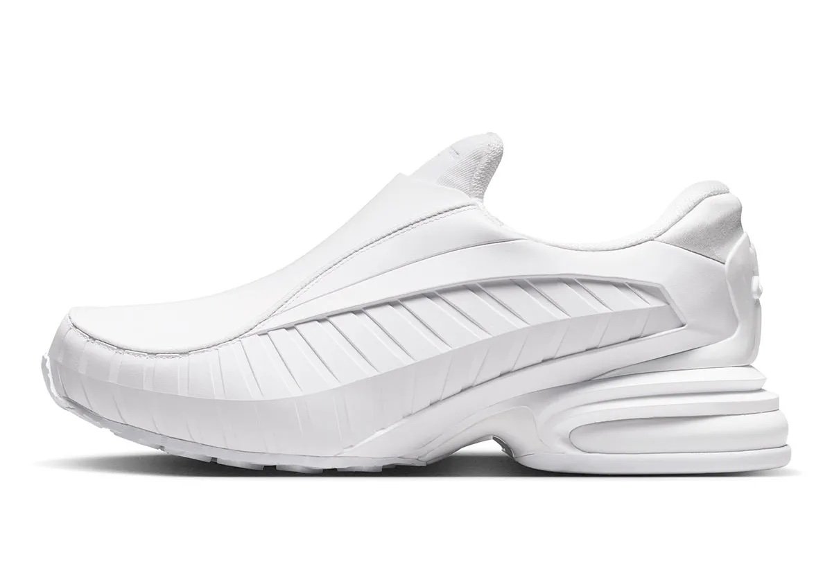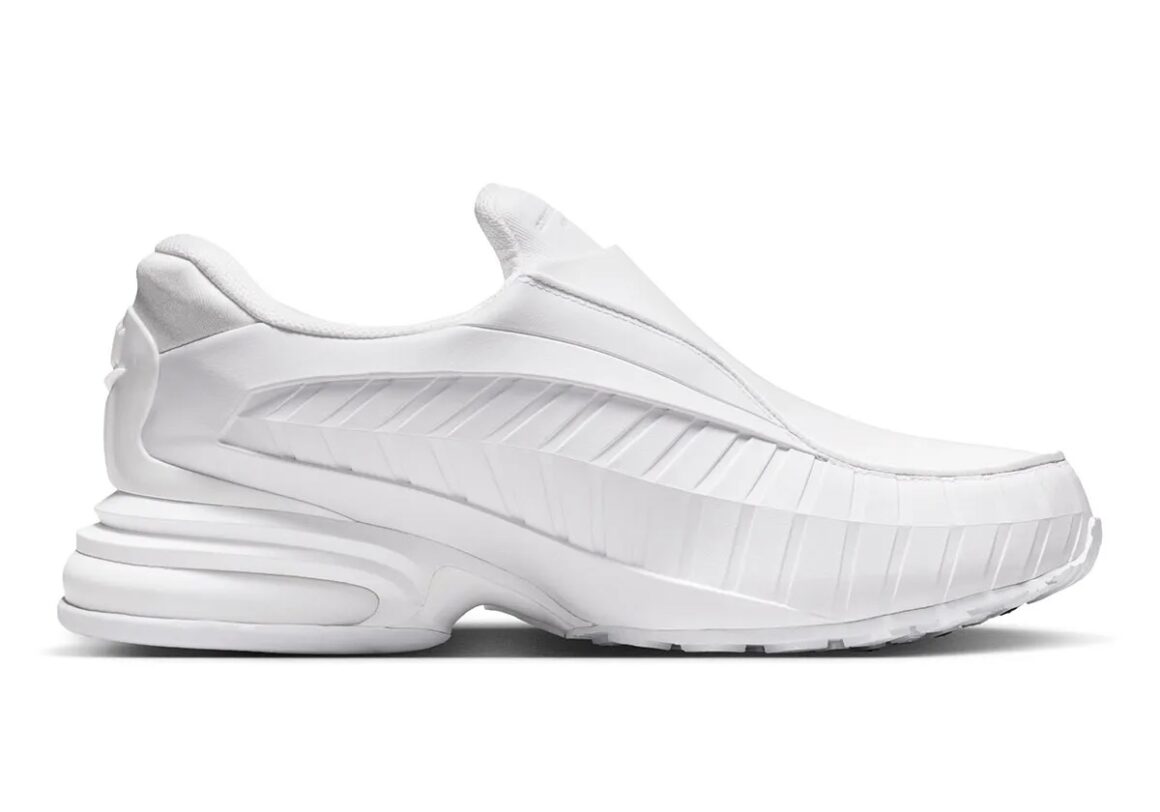 Cette collaboration célèbre le retour des silhouettes techniques du début des années 2000, aujourd’hui réinterprétées avec une approche plus mode que performance. Avec son design sans lacets et sa construction enveloppante, la Nike Air Max Dolce trouve naturellement sa place dans cette tendance, où les sneakers hybrides gagnent en popularité. Plutôt que de transformer radicalement le modèle, Comme des Garçons choisit d’en accentuer les traits les plus singuliers. Le design slip-on colle parfaitement avec le succès des sneakers façon mocassin, où l’absence de lacets devient un véritable parti pris.