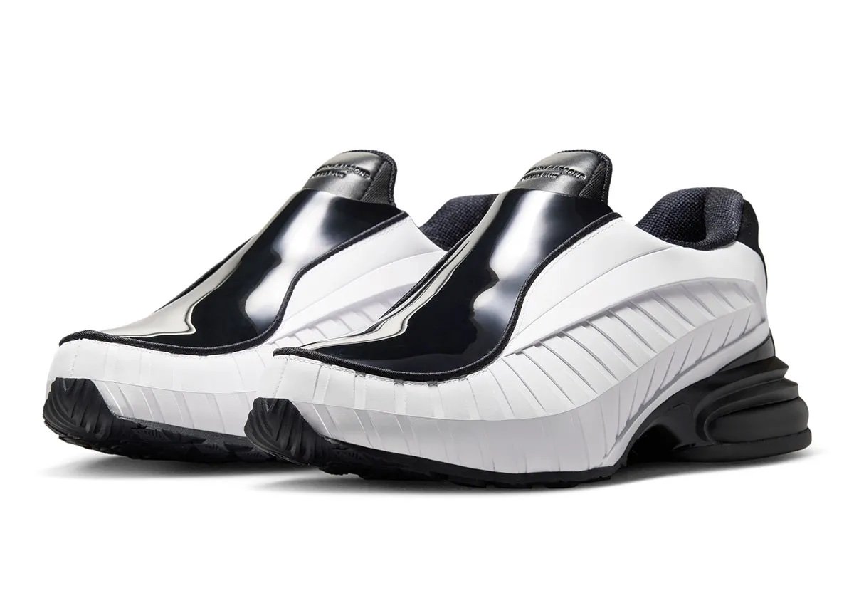 La Nike Air Max Dolce n’est pas un modèle qui a marqué son époque de manière spectaculaire. Lancée en 2002, elle s’inscrivait dans une vague de running technique au design futuriste, mêlant performance et expérimentation esthétique. Avec son laçage dissimulé, sa construction fluide et ses lignes organiques, elle proposait une alternative plus radicale aux silhouettes running traditionnelles. Comme des Garçons s’est fait une spécialité de remettre en lumière ce type de modèles méconnus. La marque japonaise, notamment à travers sa ligne Homme Plus, a toujours su détourner les codes établis de Nike, en allant chercher des références inattendues plutôt que de se limiter aux icônes évidentes. Cette Air Max Dolce s’inscrit dans cette logique, tout en rejoignant une tendance actuelle : celle des sneakers hybrides à enfiler, à mi-chemin entre chaussure technique et slip-on moderne, à l’image des silhouettes mocassins popularisées récemment.
