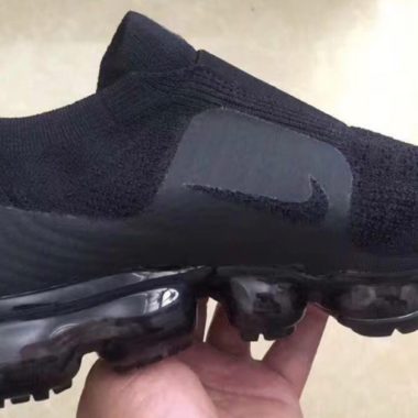Cette nouvelle collaboration reprend le design de la Nike Air Vapormax Moc que nous vous avions présenté il y a quelques semaines. L’originalité de cette version se situe au niveau du strap élastique qui remplace les traditionnels lacets, ce qui permet d’enfiler la sneaker comme un chausson (d’où l’appellation Moc). Cette Comme des Garçons X Nike Air Vapormax arbore une teinte monochrome noire avec des empiècements thermocollés sur les côtés laissant apparaître un mini Swoosh. On observe sur le strap élastique un large Swoosh gris foncé ainsi qu’un branding sur les semelles intérieures. L’imposante semelle à bulles d’air noires, qui fait le succès du modèle, vient compléter son look futuriste.