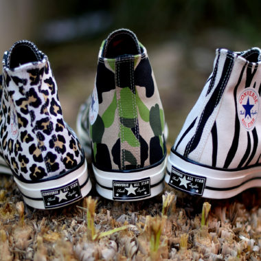 À la manière de la marque au Swoosh en ce moment, Converse équipe l’une de ses silhouettes phares, la Converse Chuck Taylor All Star 70, d’imprimés très originaux. En témoignent le pack « Pony Hair » et les dernières collaborations avec Brain Dead qui viennent tout juste d’être présentés en boutiques. La sneaker est aujourd’hui de retour sous la forme d’un trio tout aussi original démontrant une fois de plus les efforts de la marque de Boston pour offrir une place de choix à la paire. Ces trois versions ont la particularité d’être issues des archives de la firme américaine et figuraient parmi les premiers motifs utilisés sur la paire à l’époque. Déclinées au sein du « Print Pack », les paires reprennent ainsi l’aspect du léopard et du zèbre tandis que la dernière mouture bénéficie d’un traitement « duck camo » similaire à celui utilisé chez BAPE.